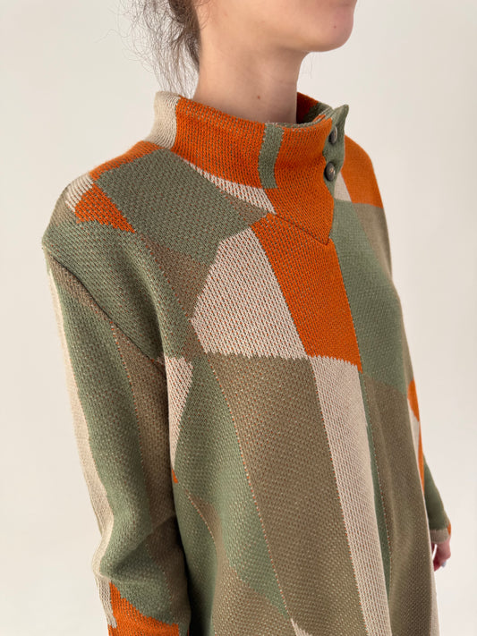 Rochie vintage din lână jacquard în croi în stil anii 50 și culori superbe
