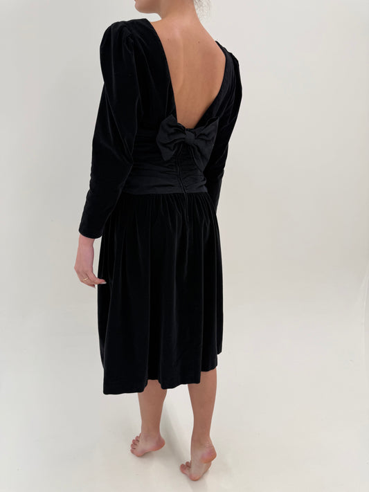 LBD vintage din catifea cu talie uktra marcată și fundă la spate cu decupaj