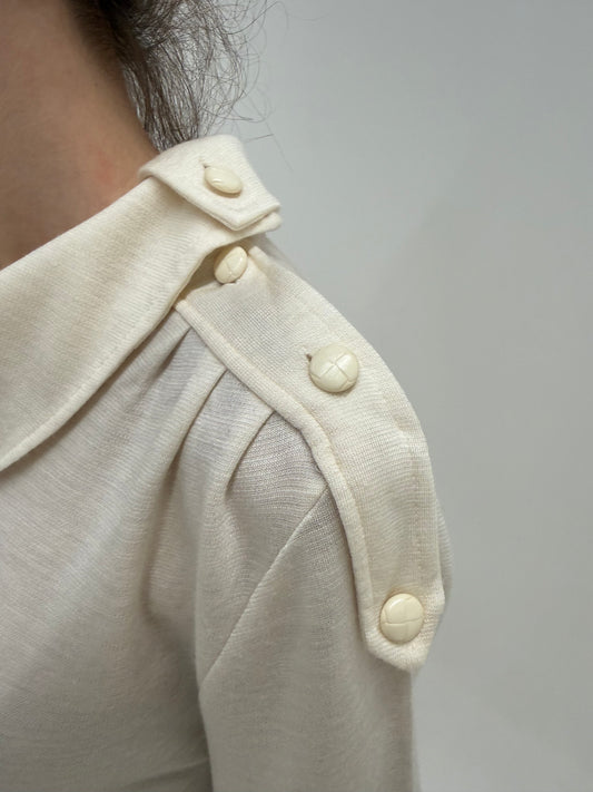 Rochie maxi butter white cu talie reglabilă din jerse de lana extrafina
