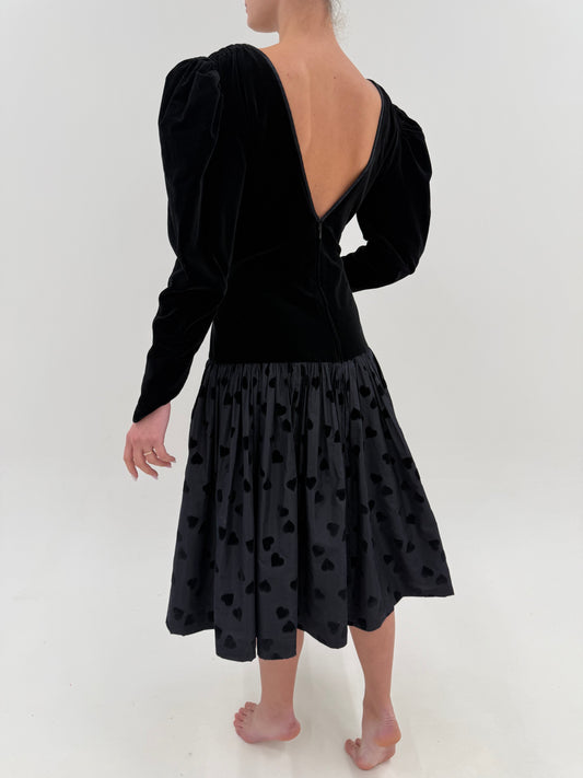 LBD vintage din catifea cu spate gol și tafta cu buline din mătase naturală
