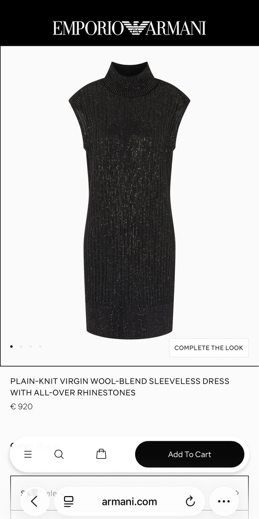 Rochie Armani din tricot de lana extafina cu talie marcată și fusta din stofă
