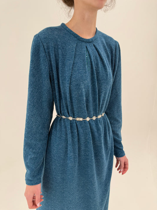 Rochie vintage din tricot dens extrafin din mic de lana cu bust drapat