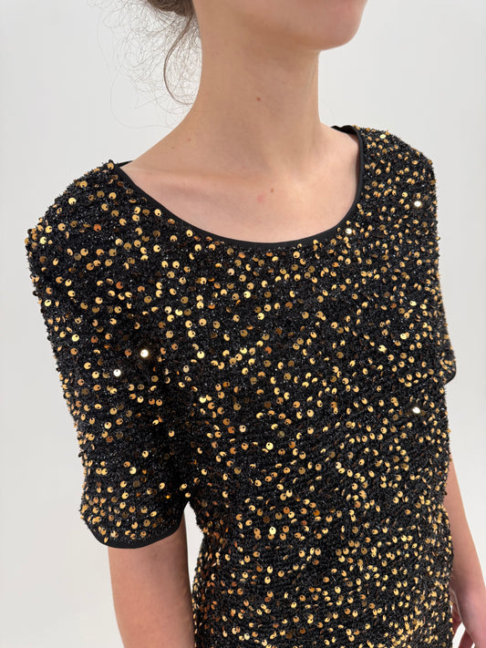 LBD de seară confort cu paiete aurii în croi lejer