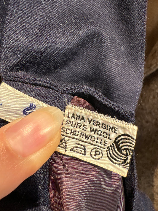 Sarafan vintage din lana extafina navy cu fustă super amplă și talie ultra înaltă