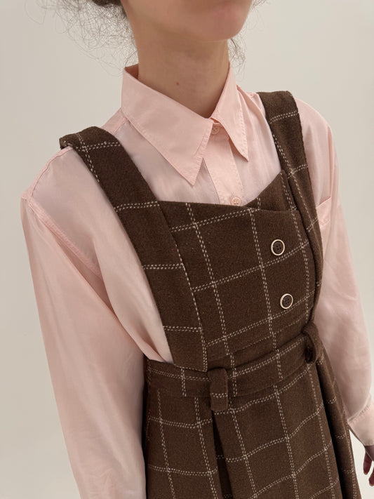 Rochie vintage din lana groasă extrafina în carouri powder Pink