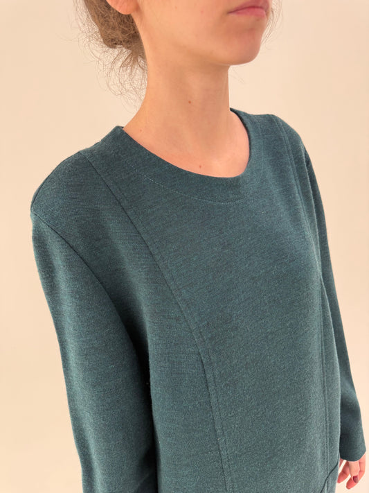 Rochie midi din tricot extrafin gros și dens de lana extragina forest green