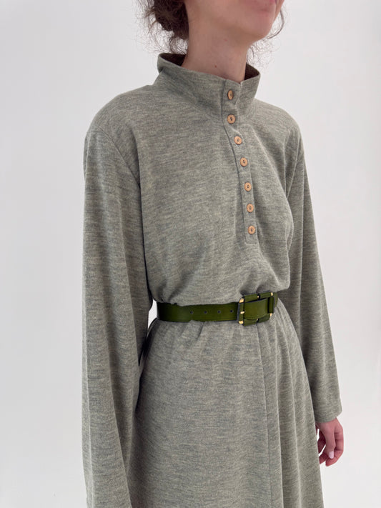 Rochie maxi old vintage sfârșit de ani 70 din lana extrafina cu talie reglabilă