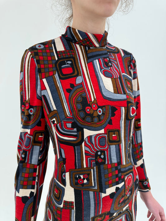 Rochie Mod Old vintage ani 60 târzii din lana extrafina cu print pop Art