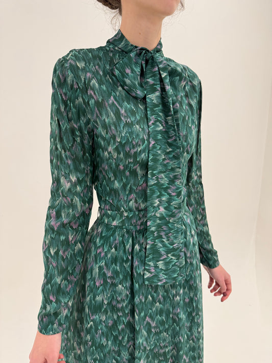 Rochie Old vintage anii 70 din creppe gros de blend mătase naturală