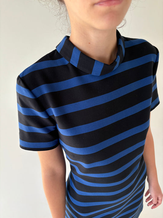 Rochie / Pardesiu Navy maxi cu buzunare și inserții contrastante