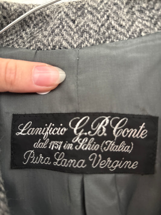 Sacou italian din tweed gros Chevron în nuanțe de gri din lana pura virgină