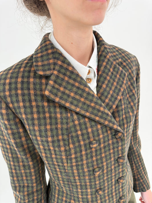 Sacou old vintage anii 40 inceput de ‘New Look’ in stil Dior din stofă countryside