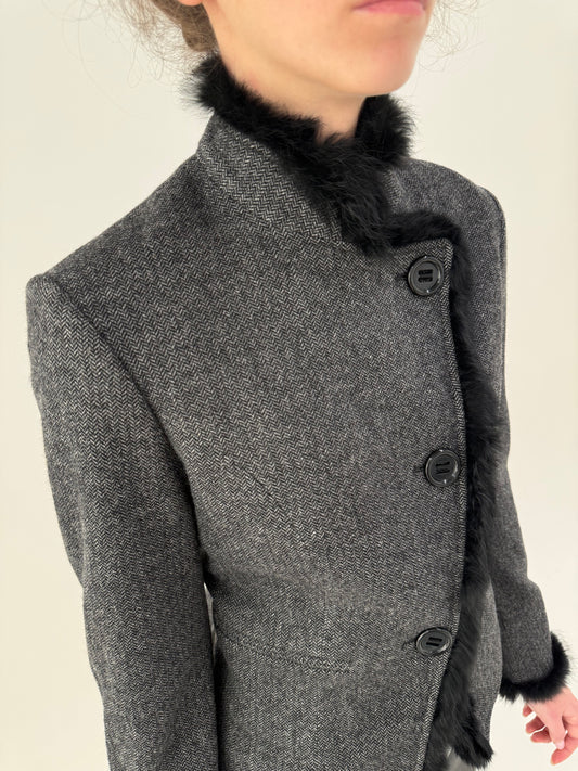 Sacou vintage cambrat din boucle gros de lana în nuanțe neutre