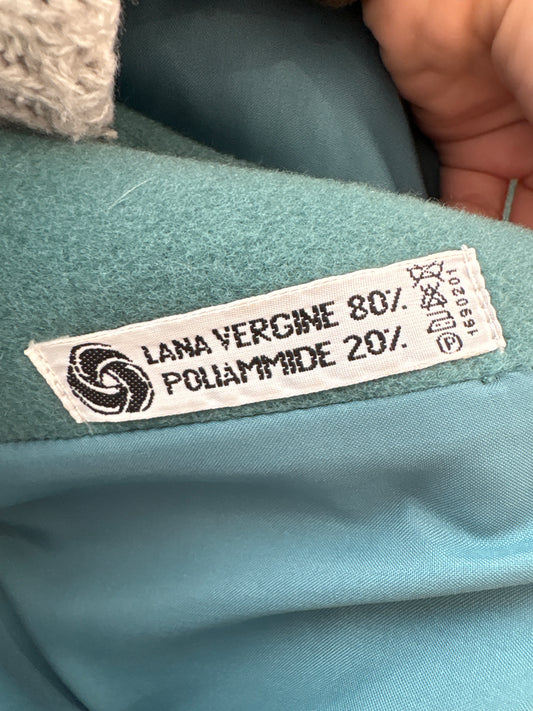 Palton vintage petite în croi oversized ocean blue din stofă pufoasă extrafina