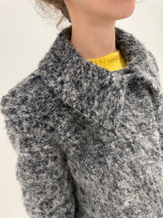 Jacheta din boucle de lana pufos în jumate de gri și croi actual