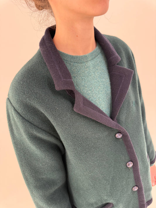 Jacheta dark green petite din lana groasă extrafina cu paspoal