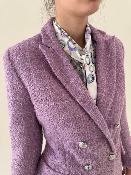Sacouri noi lavandă din tweed de bumbac cu lana și nasturi metalici argintii