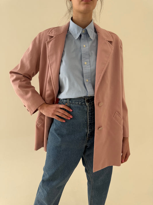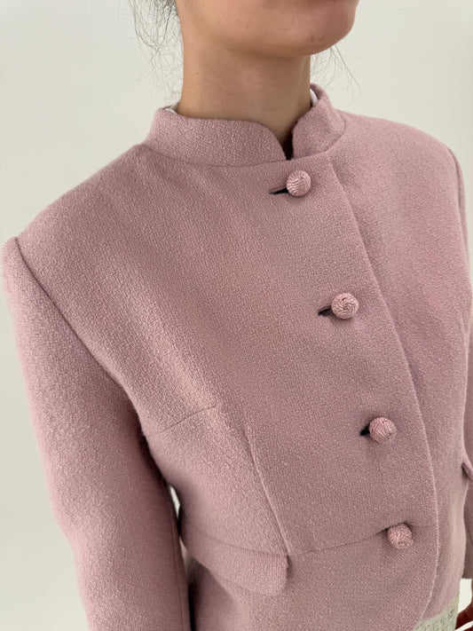 Sacou vintage cambrat powder pink cu talie marcată și nasturi superbi