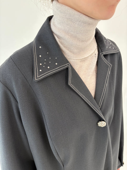 Palton negru vintage din stofă de lana excepțională structurată