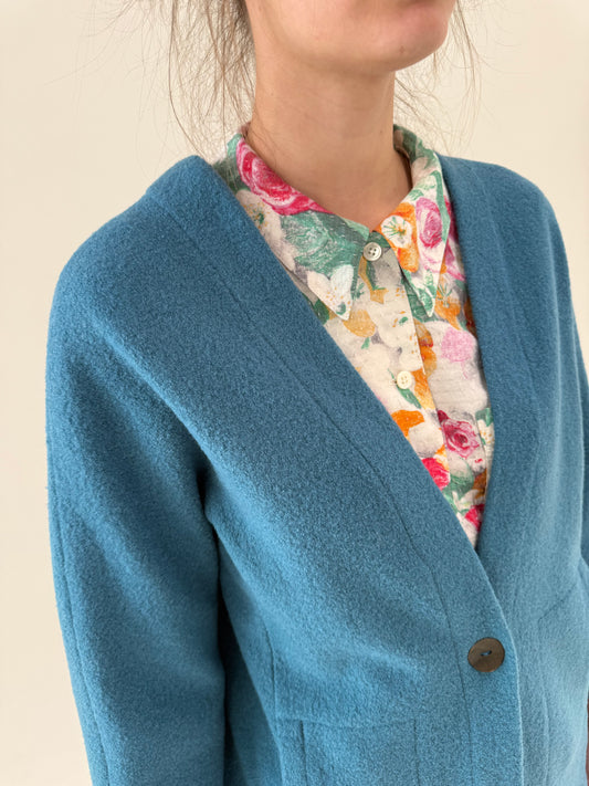 Sacou cambrat de brand ultra luxury AKRIS roșu superb din bumbac cu lana și alpaka