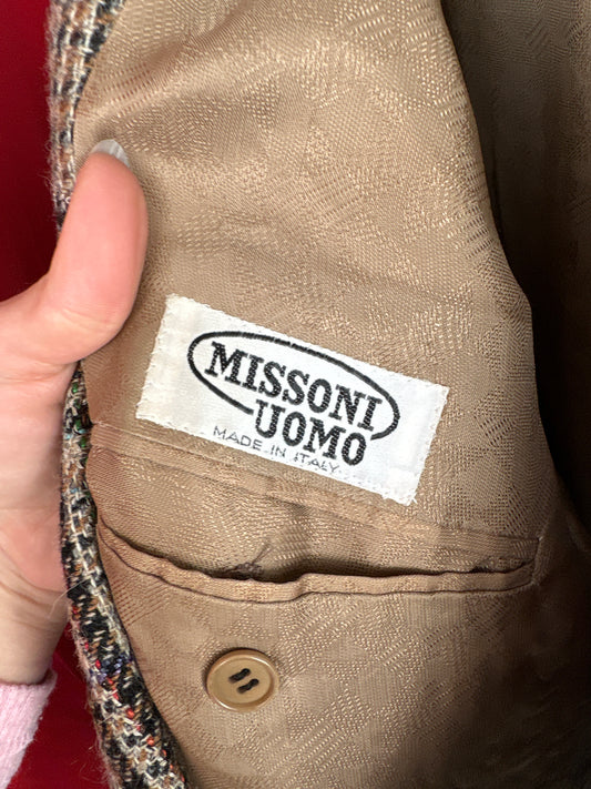 Sacou luxury Missoni din lana în carouri și culori neutre în croi actual