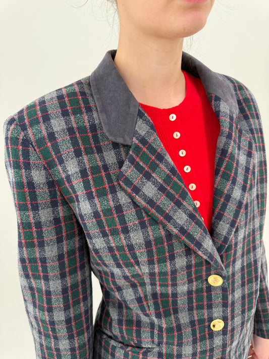 Sacou în carouri cu nasturi aurii din lanita in croi ușor cambrat