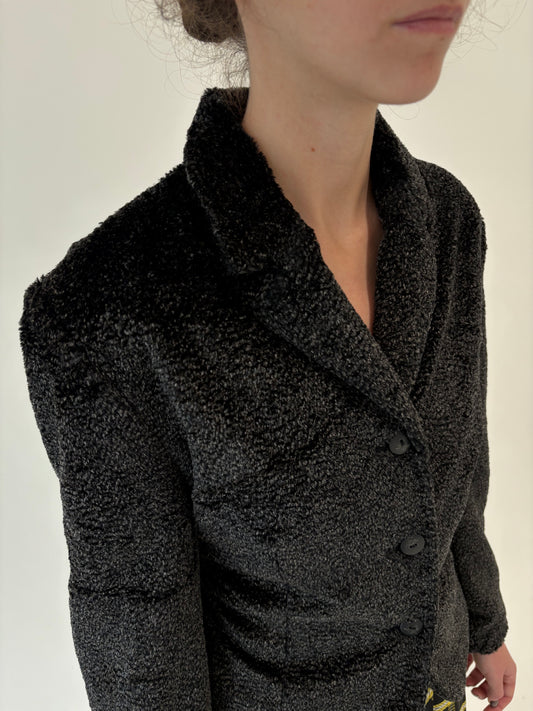 Sacou premium negru cambrat cu aspect de blăniță lucioasă