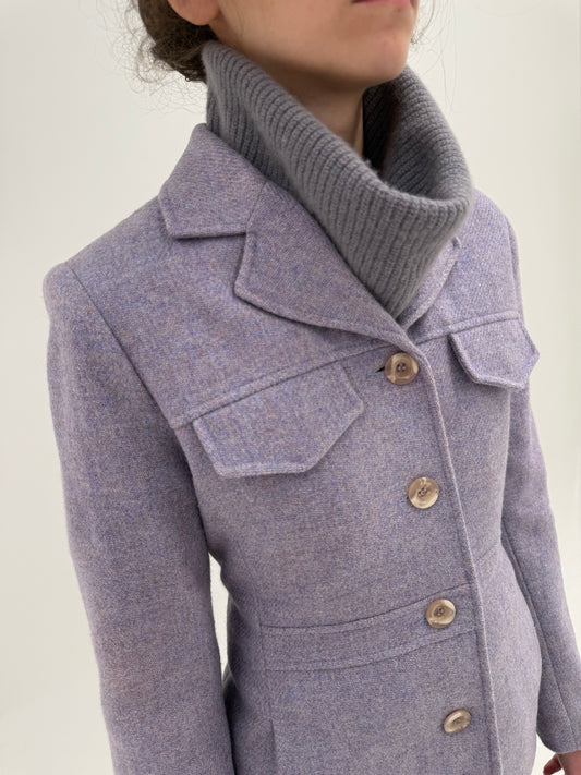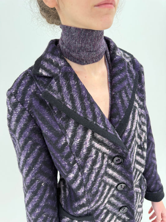 Jacheta vintage cambrata lavanda din tweed de lana și mohair