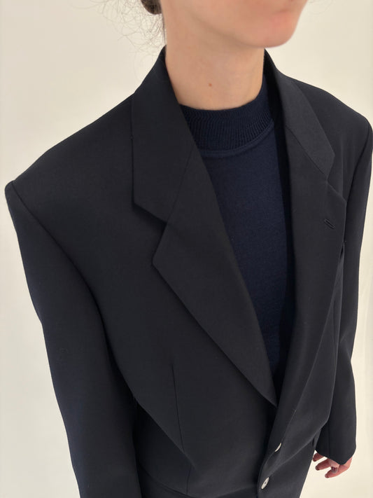 Sacou Navy excepțional din lana extrafina foarte ușor satinata