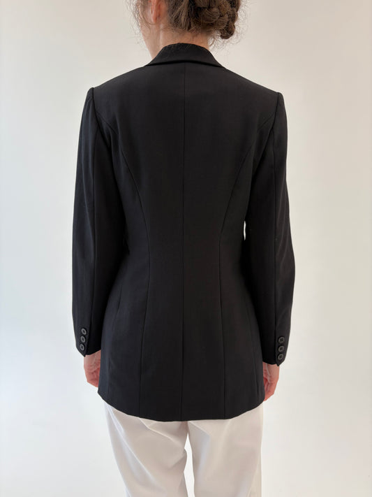 Sacou cambrat negru din stofă de lana extrafina