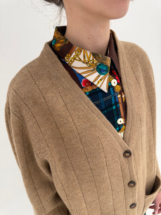 Cardigan super gros camel din lana merino extrafina de gramaj super mare