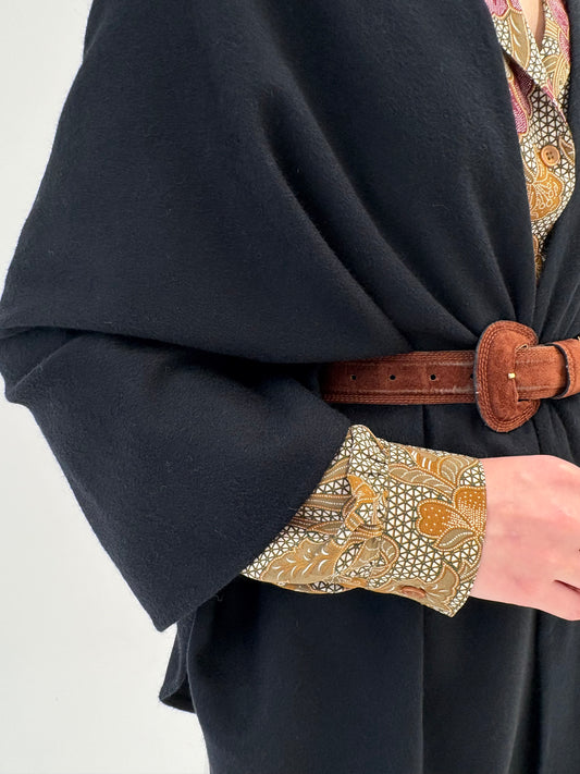 Capa neagră din lana excepțională extrafina ușor lucioasă de la zi la seară