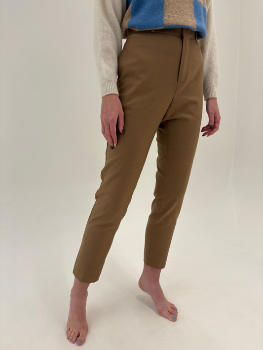 Pantaloni camel din stofă de lana extrafina ultra confort
