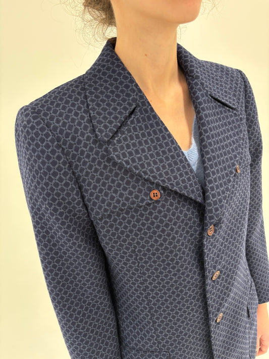Sacou petite old vintage anii 70 din jacquard de lana structurat navy blue