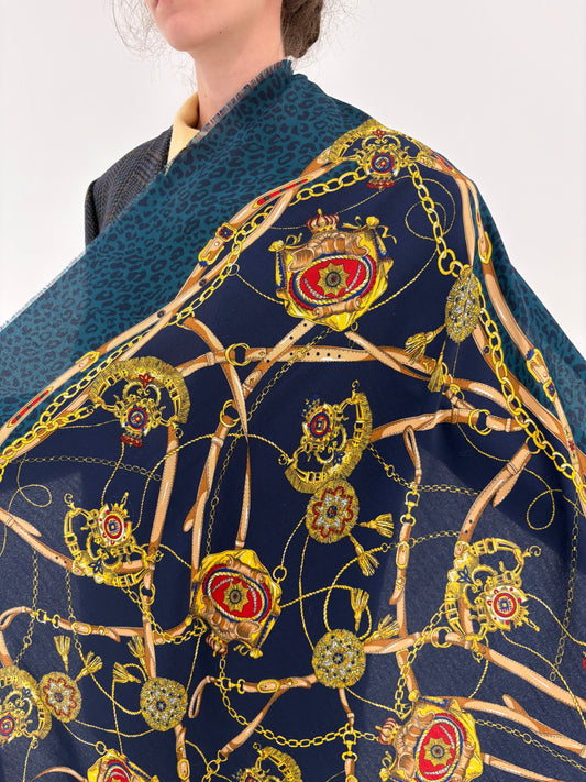 Eșarfă XXXXL cu print baroc din mix de lana extrem de fină