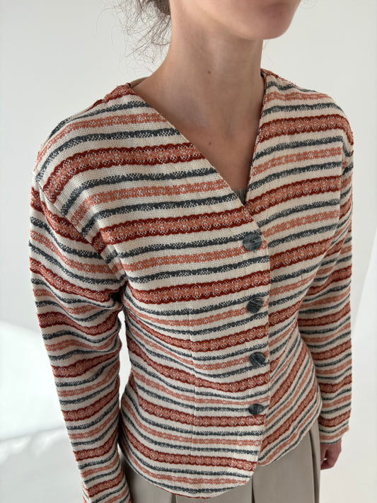 Sacou cambrat butter nude cu dungi din stofă plină de lana texturată ca o pânză
