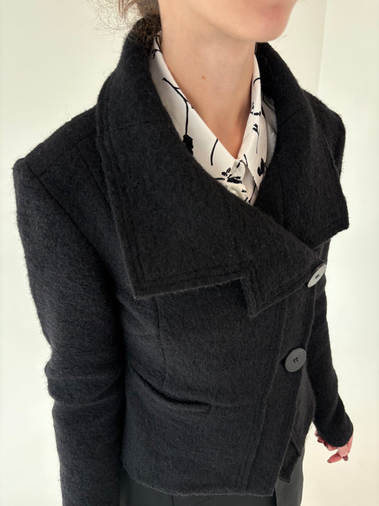 Sacou negru italian în croi cambrat din boiled wool