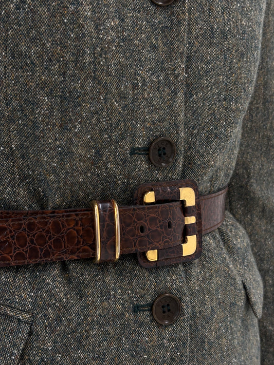 Centura vintage chocolate brown texturată cu feronerie aurie
