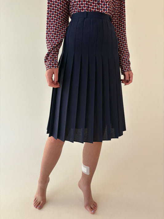 Fustă plisată navy din lana extrafina cu talie ultra înaltă marcată
