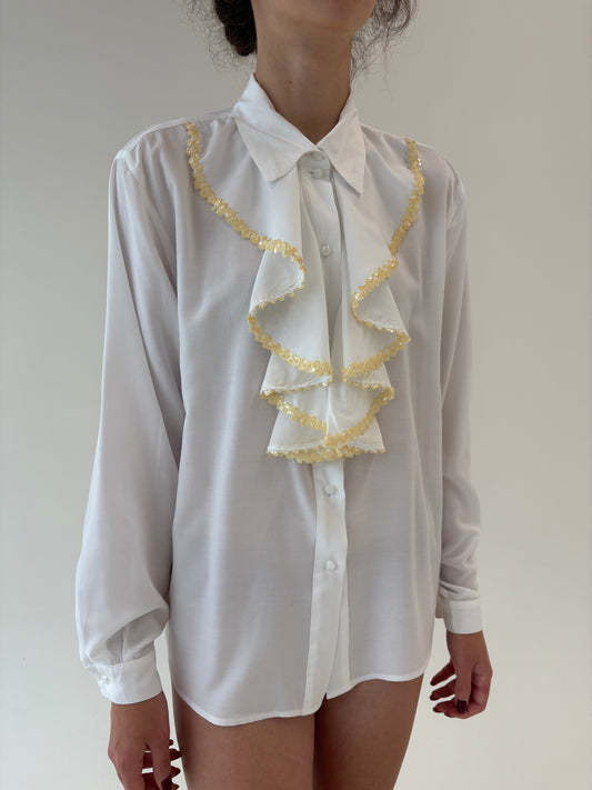 Oversized/ LCămașa vintage cu jabou bogat și aplicații manuale