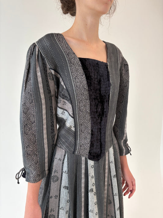 Rochie vintage cu corsaj și buzunare din bumbac și lana extrafina