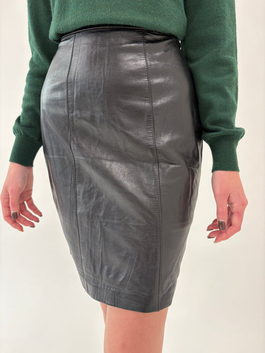 Fustă din piele naturală moale conică cu talie ultra înaltă