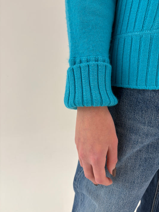 Pulover baby Blue cu torsade din lana merino extrafina de gramaj mare