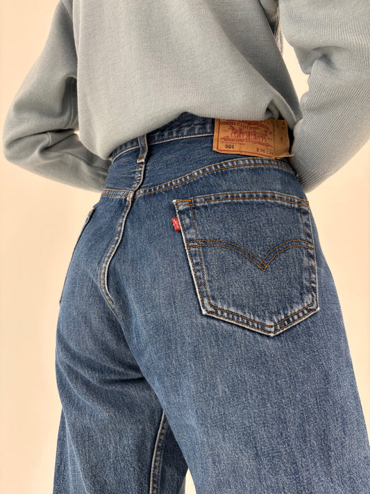 Jeans vintage Levi’s model 550 tall cu talie ultra înaltă forest green