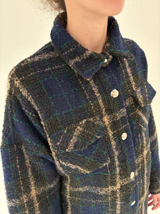 Pardesiu din boucle în combinație superbă de culori în stil cămașă oversized