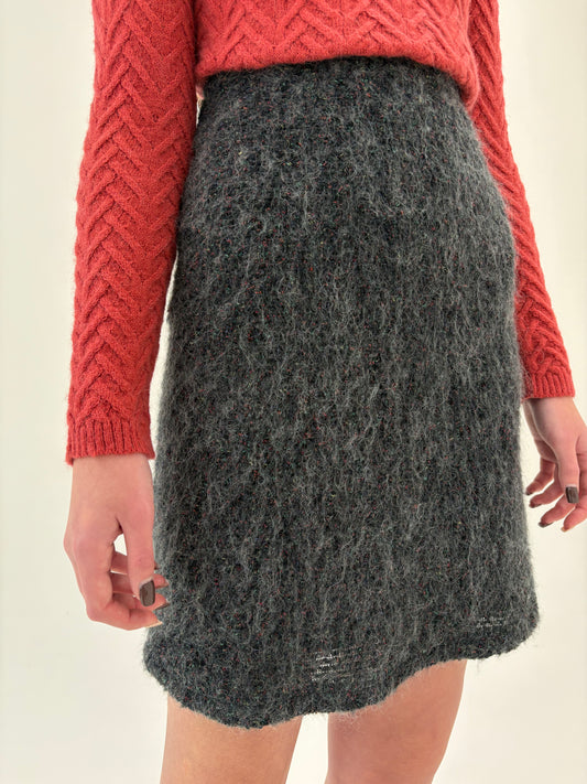 Fustă din trvoit plin din baby mohair cu inserții curcubeu