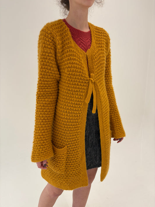 Pardesiu mustard yellow din tricot texturat de lana plină si mohair