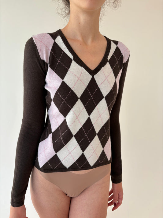 Puloveras cu romburi italian din bumbac cu un touch de cașmir
