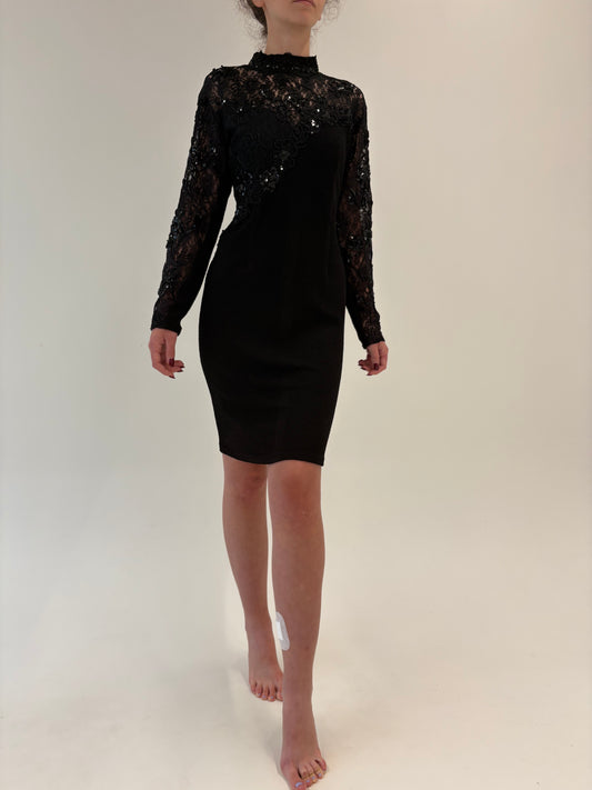 LBD vintage modelator cu inserții de dantelă și aplicații manuale