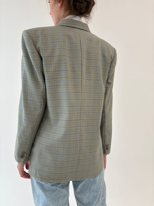 Sacou vintage în carouri din lana extrafina în nuanțe superbe pe mint green